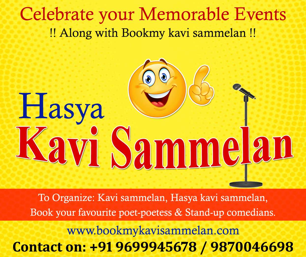 Contact Number for hasya Kavi Sammelan Booking organizer is 9699945678. Book a Kavi Sammelan with the team of your respected choice just call on 9699945678. We will make the best team of poets for you in decided budget.